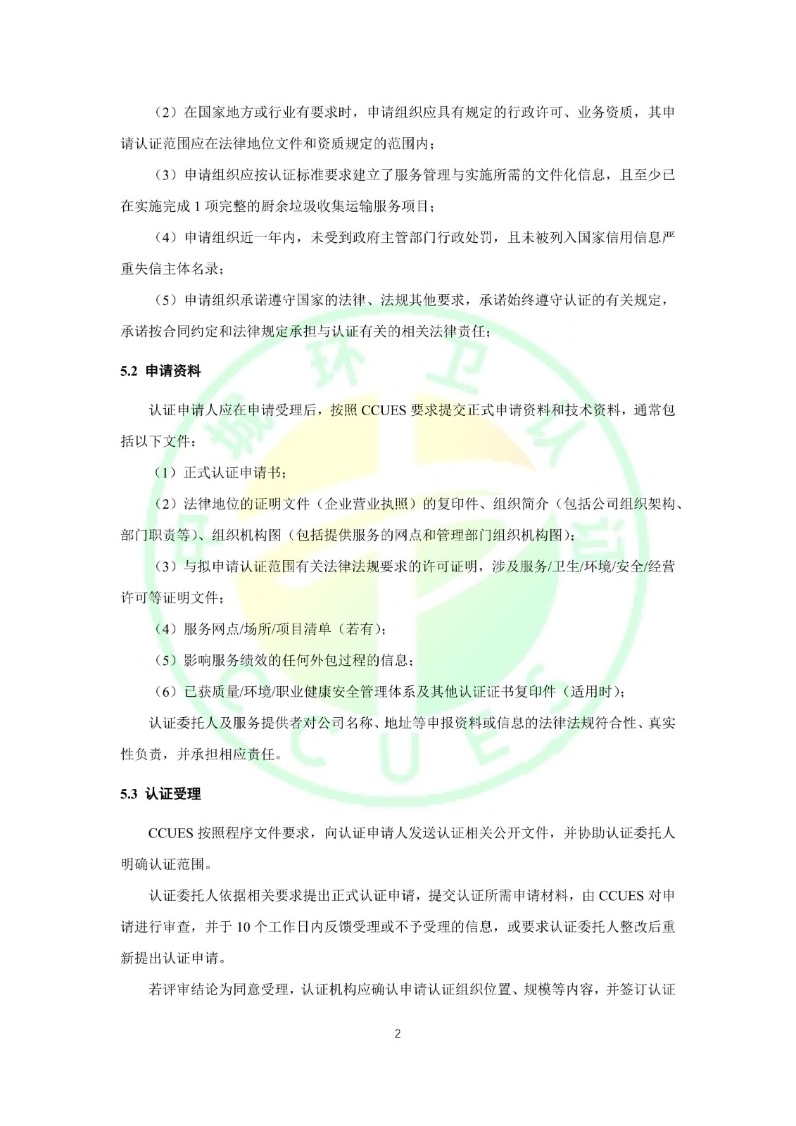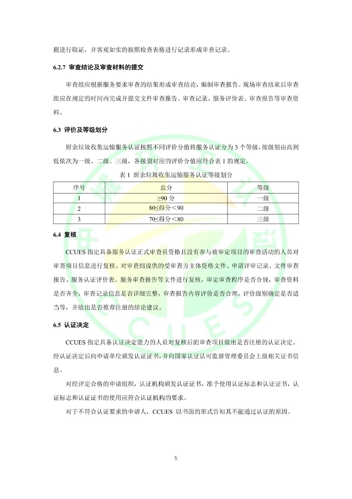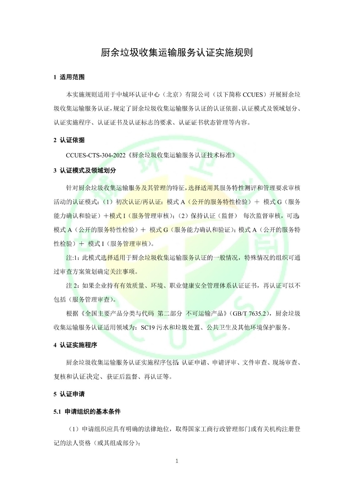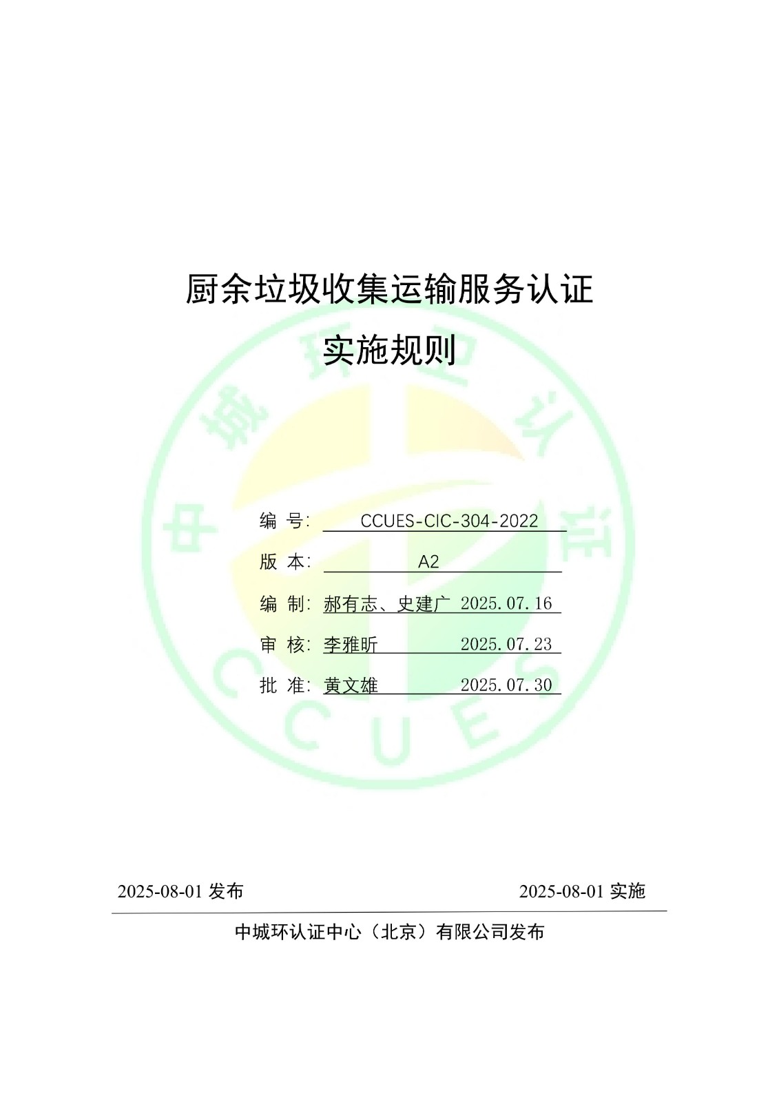 厨余垃圾收集运输服务认证实施规则 CCUES-CIC-304-2022