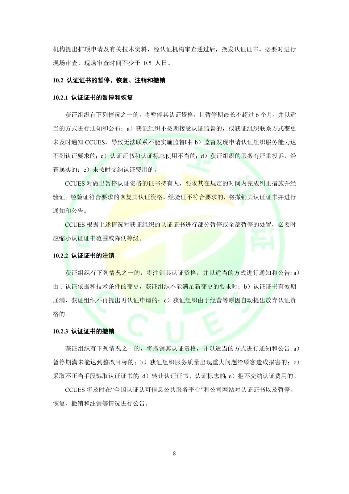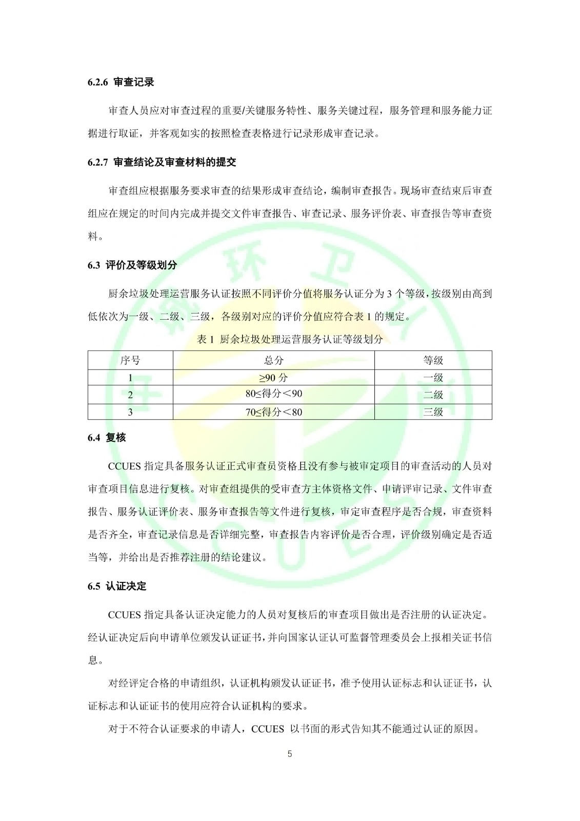 厨余垃圾处理运营服务认证实施规则 CCUES-CIC-305-2022