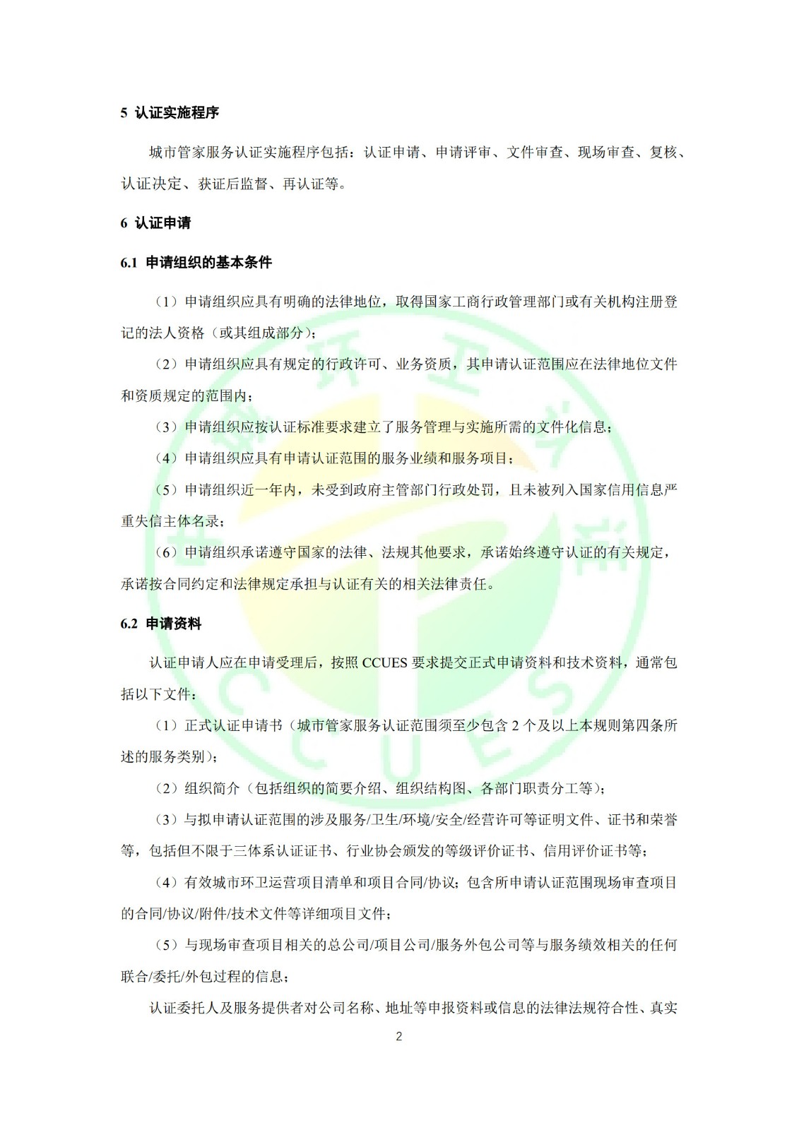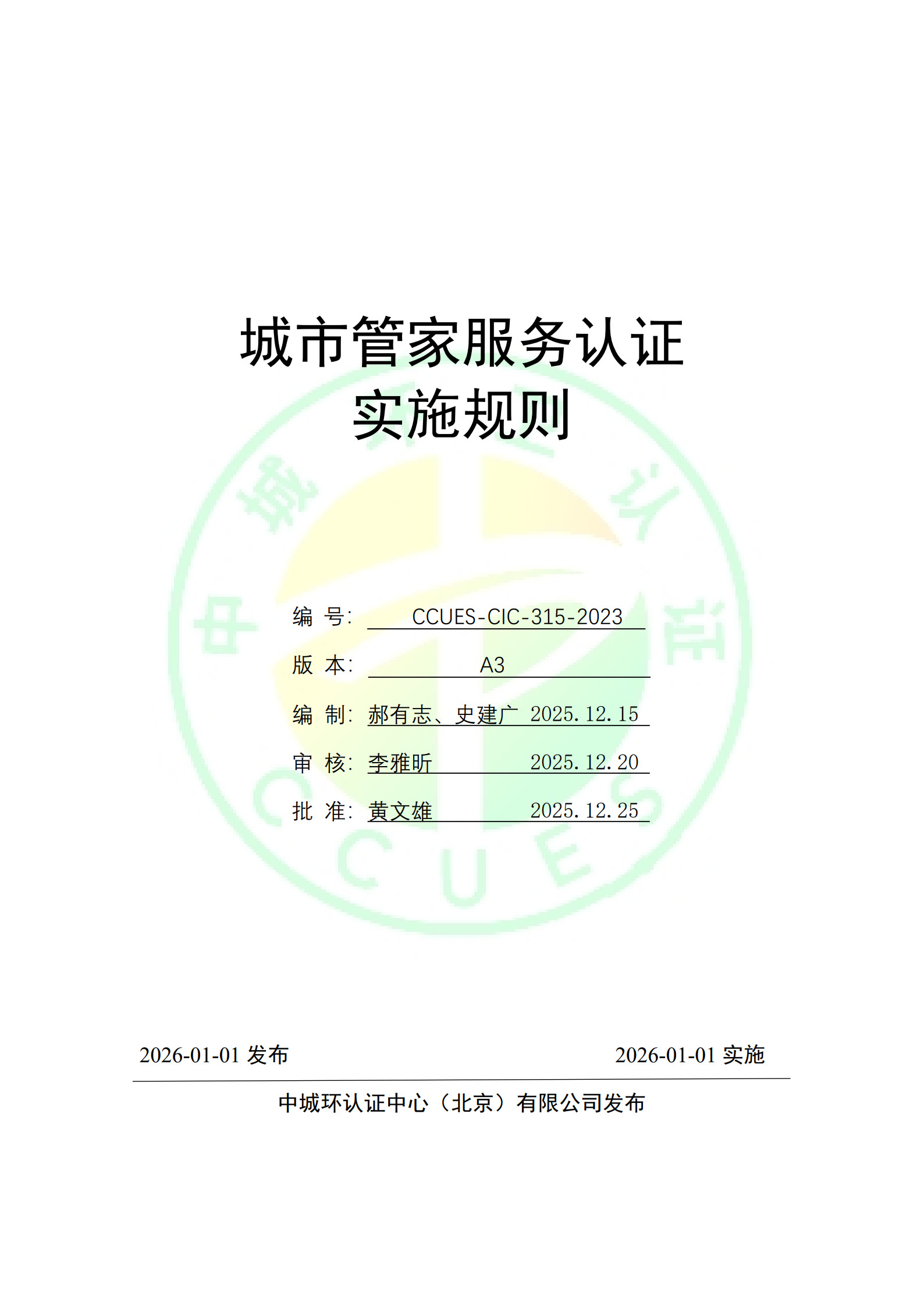 城市管家服务认证实施规则 CCUES-CIC-315-2023