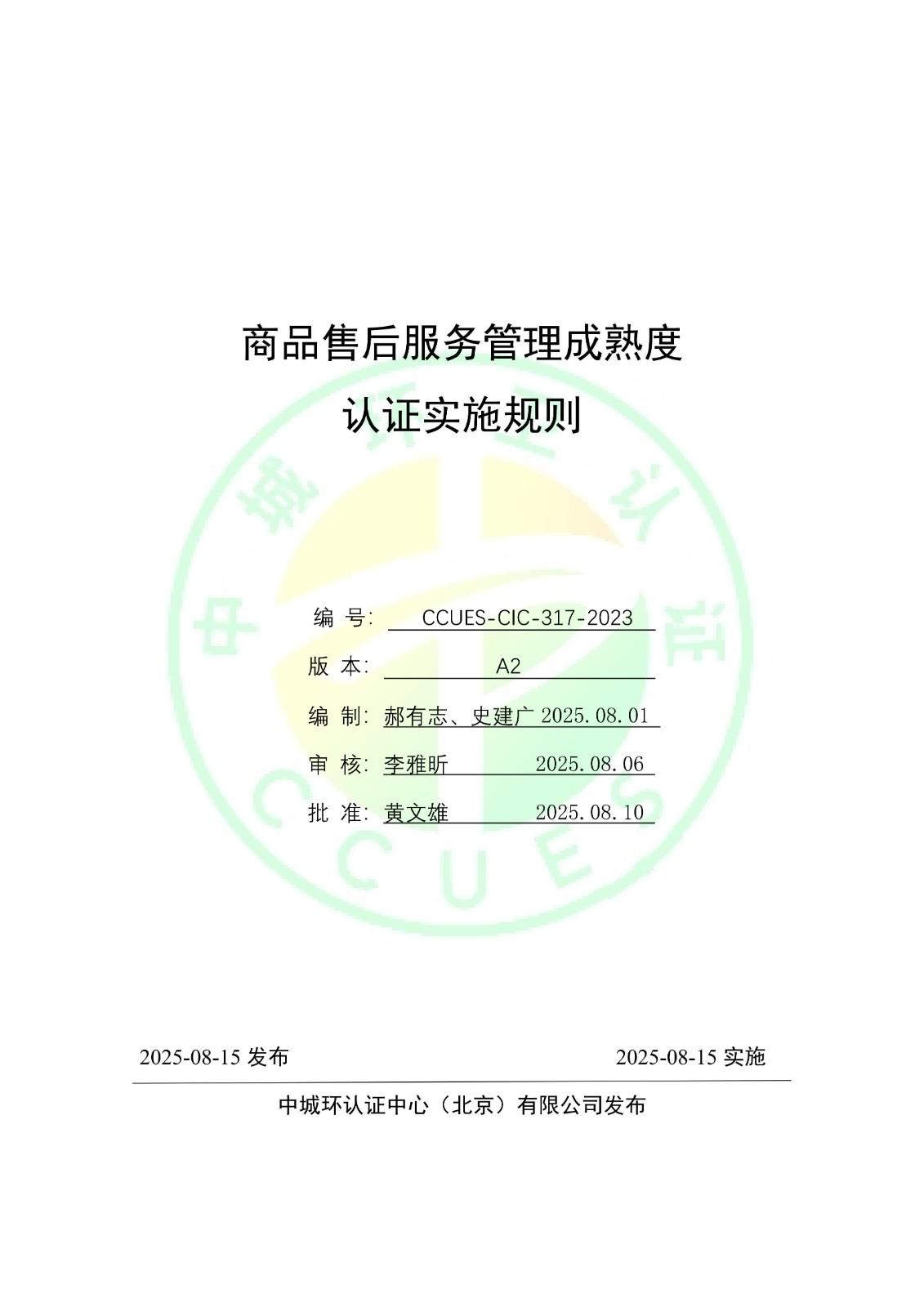商品售后服务管理成熟度认证实施规则 CCUES-CIC-317-2023