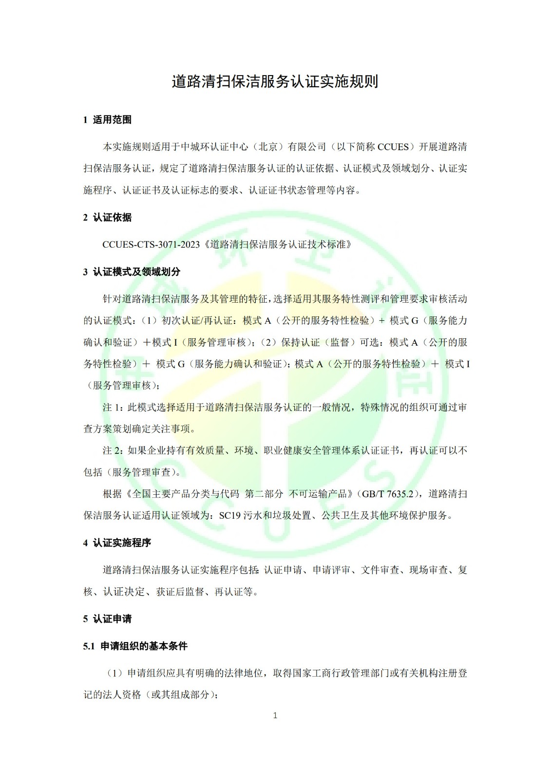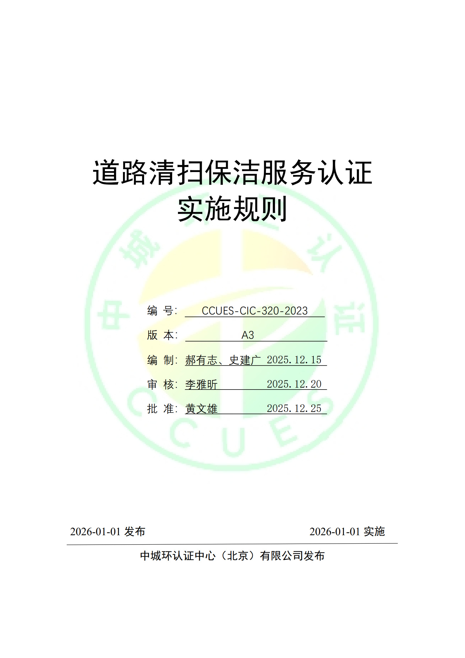 道路清扫保洁服务认证实施规则 CCUES-CIC-320-2023