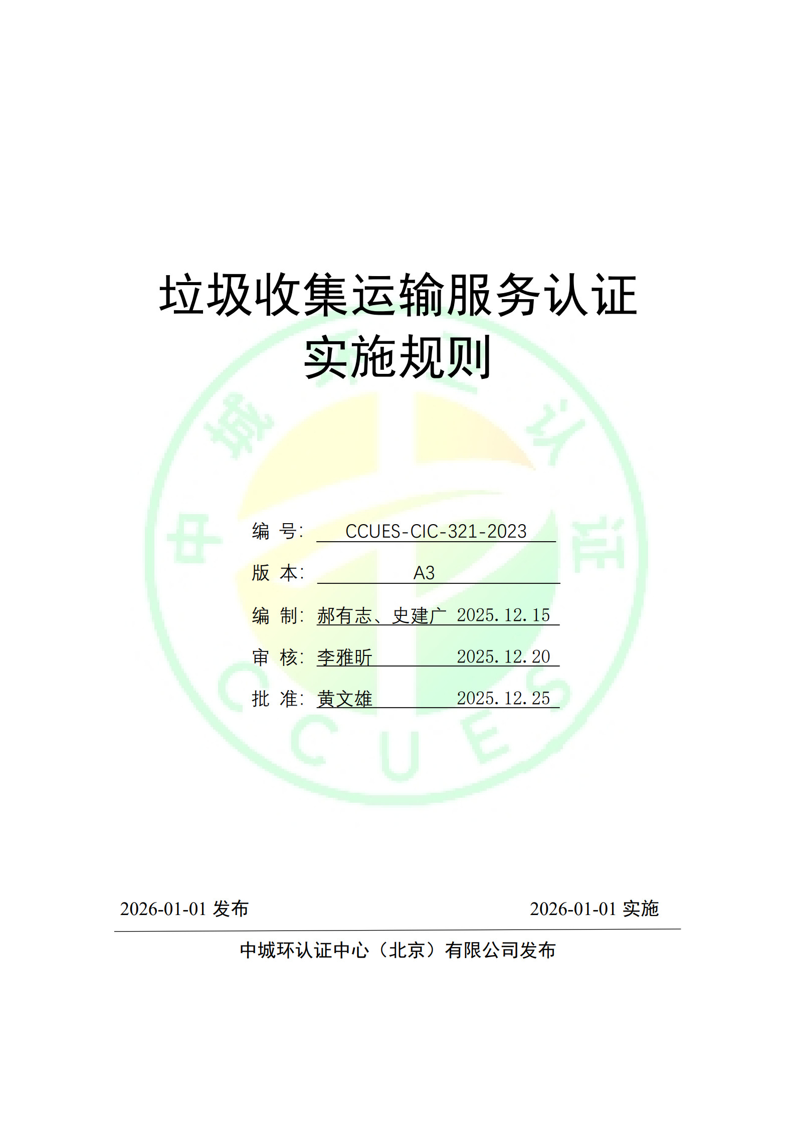 垃圾收集运输服务认证实施规则 CCUES-CIC-321-2023