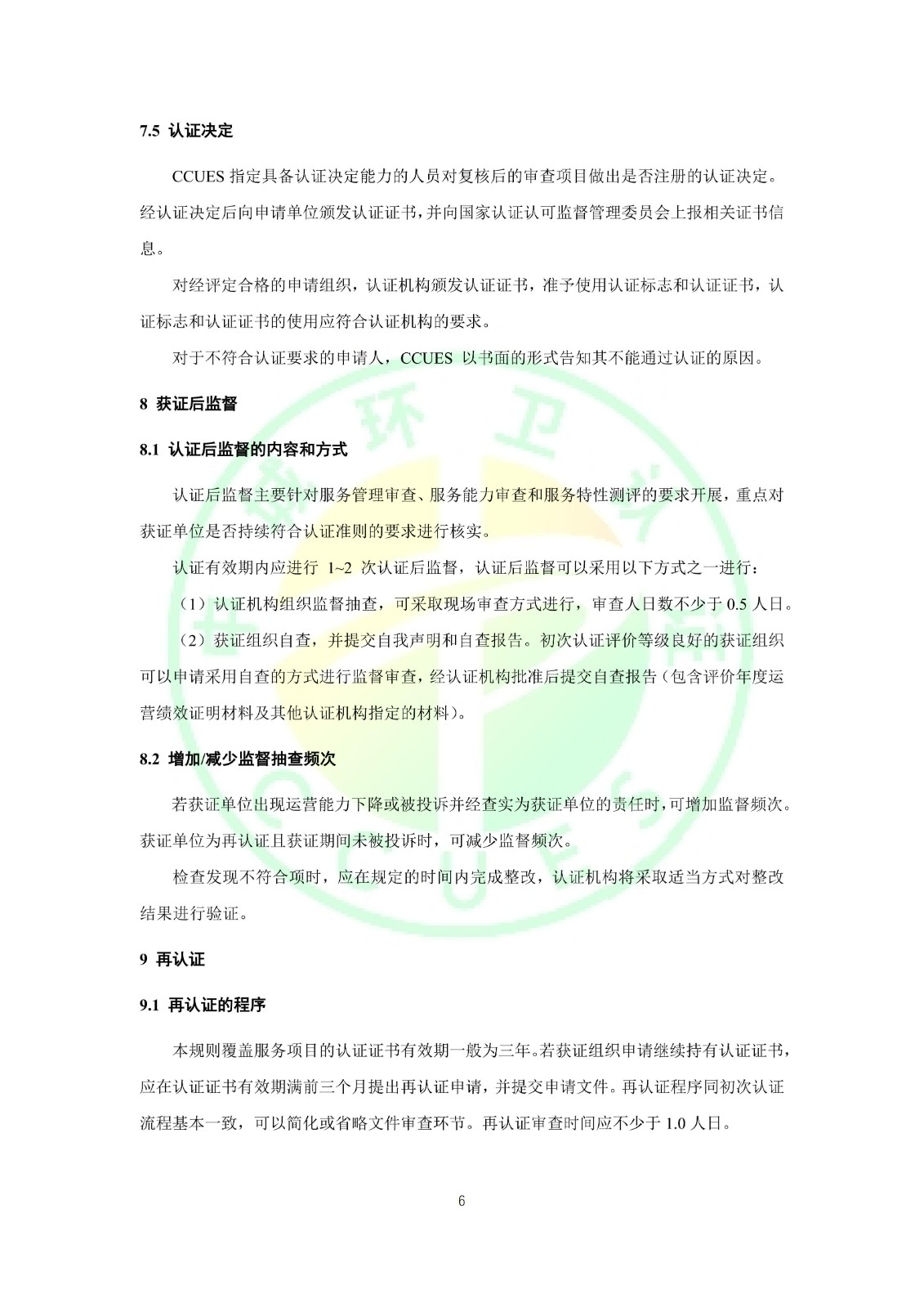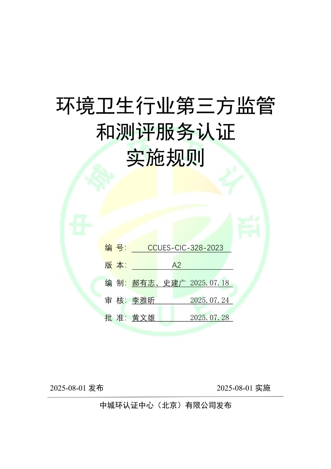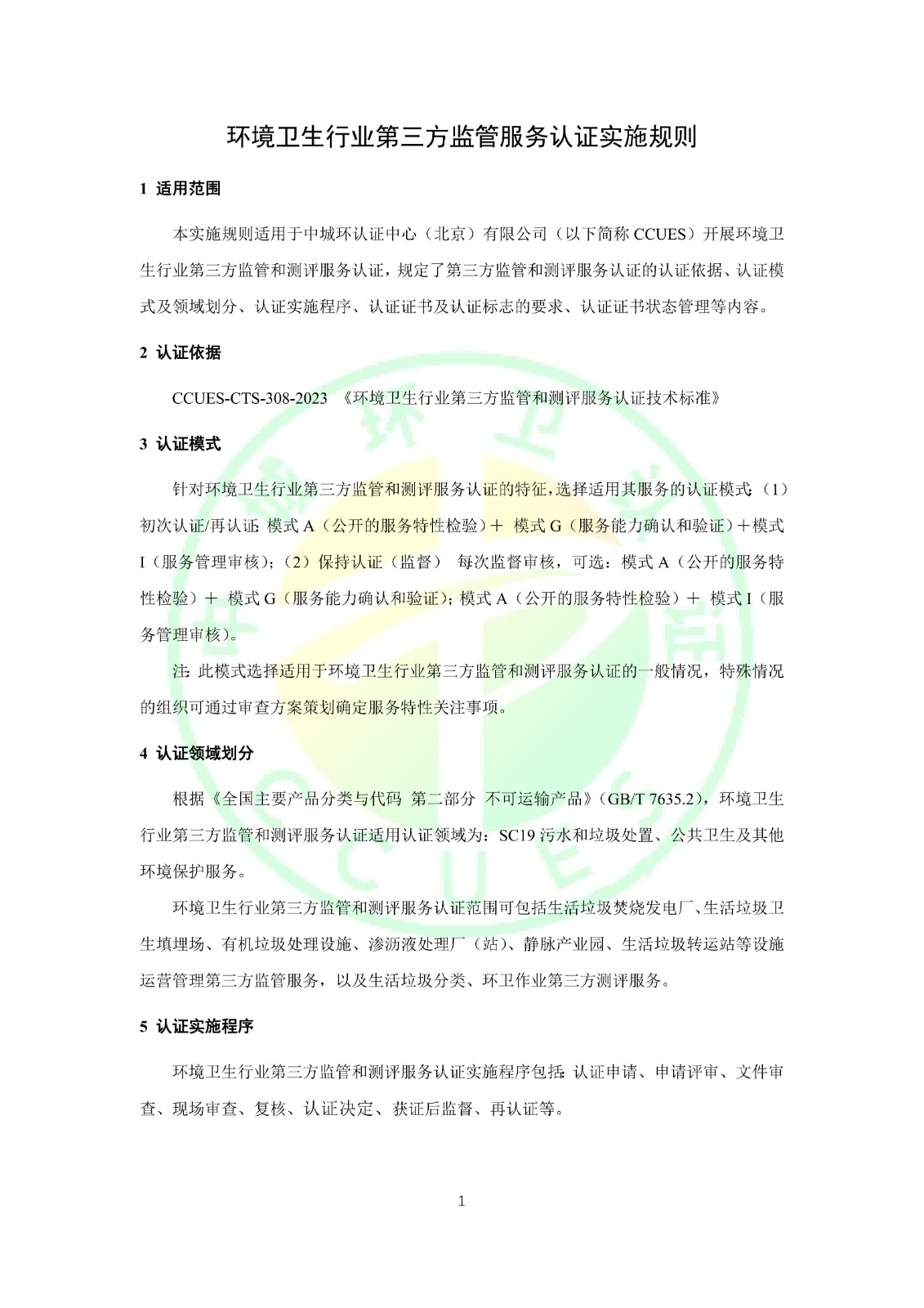 环境卫生行业第三方监管和测评服务认证实施规则 CCUES-CIC-328-2023